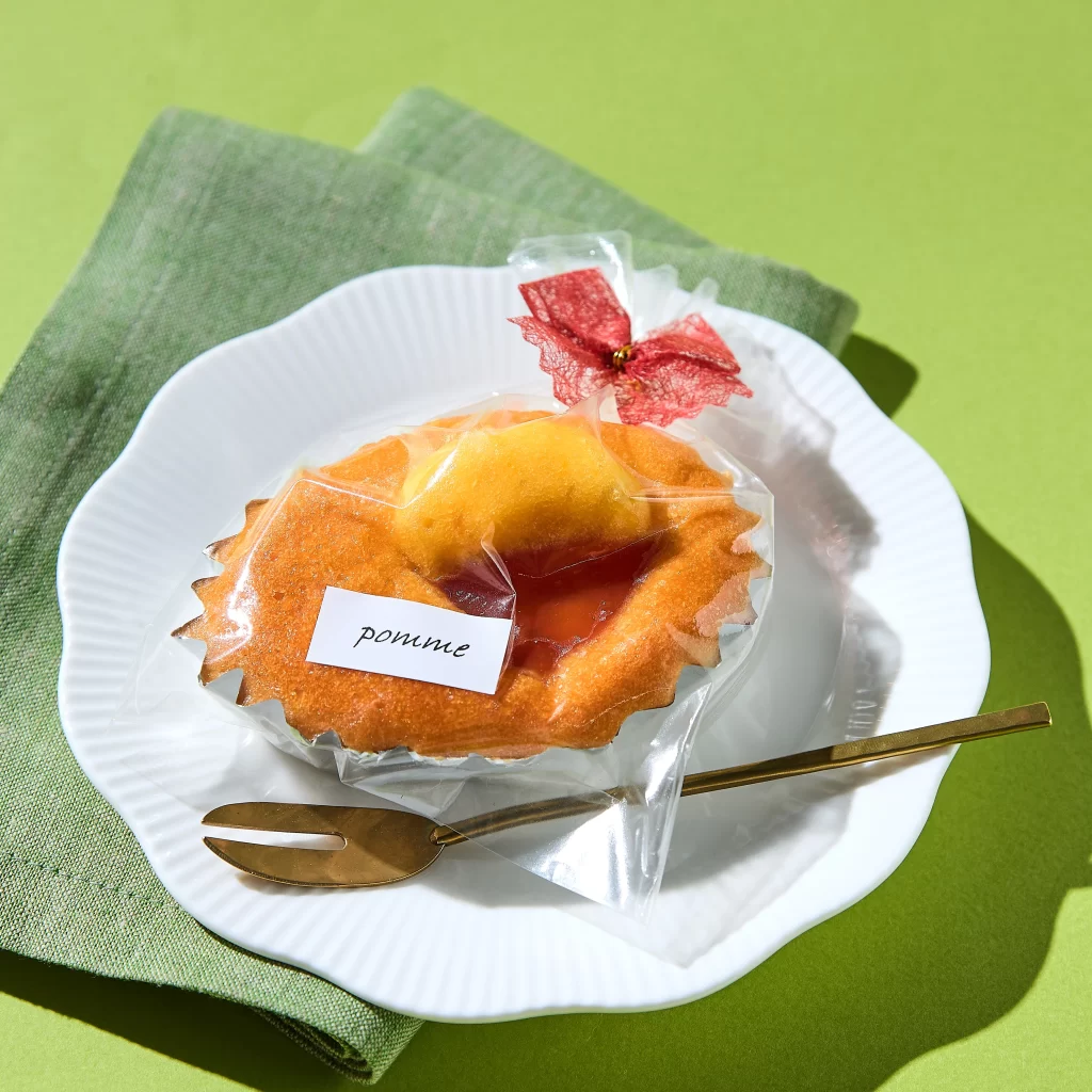 とても小さなお菓子で個包装につつまれているものは、ひとつ中身を出して、一つ袋のまま後ろにおいてもキマることがあります。今回は、手のひらサイズの大きめな焼き菓子です。